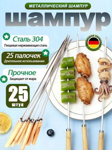 Набор шампуров с деревянными ручками, 25 шампуров для шашлыка
