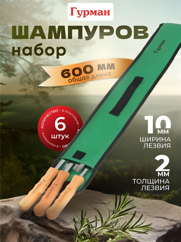 Гурман Набор шампуров 6 шт, 600х14х2 мм с деревянной ручкой в чехле, Люкс