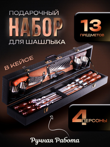 Набор шампуров подарочный в чехле для барбекю и шашлыка - 6 штук