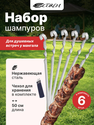 Шампура для мангала в чехле 6 шт 50 см; набор для шашлыка, барбекю, гриля СОКОЛ