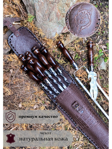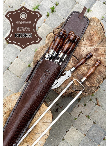 Набор шампуров с деревянной ручкой Пикник Кавказ для шашлыка в чехле из натуральной кожи