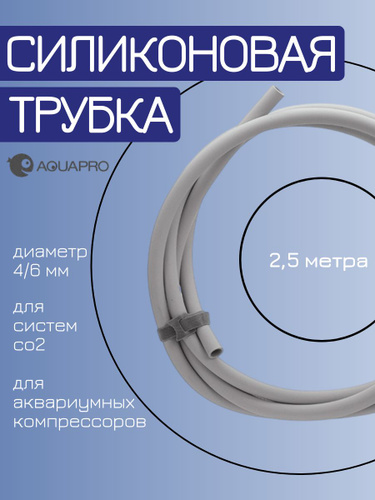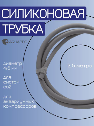 Трубка, шланг AQUAPRO pro silicone hose 2,5 метра для аквариумных компрессоров/систем со2 диаметр 4/6 мм, серый