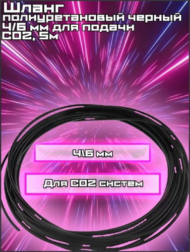 Шланг 3 метра полиуретановый диаметром 4/6 мм. (черный) для подачи CO2 в аквариум.