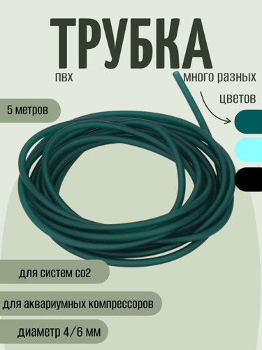 Трубка, шланг 5 метров пвх для аквариумных компрессоров/систем со2 диаметр 4/6 мм, темно-зеленый