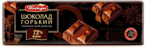 Шоколад Победа вкуса горький 72% какао, 250 г