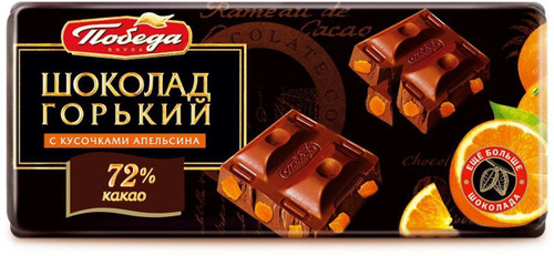 Шоколад Победа вкуса горький с кусочками апельсина, 72% какао, 100 г