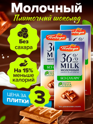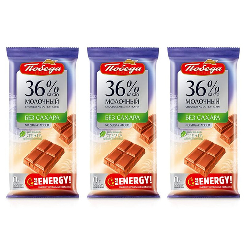 Шоколад без сахара молочный Победа плиточный 3 шоколадки