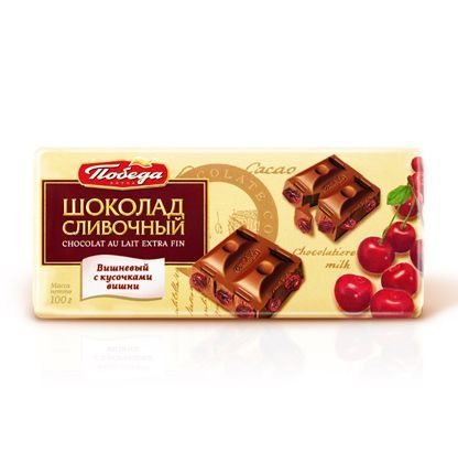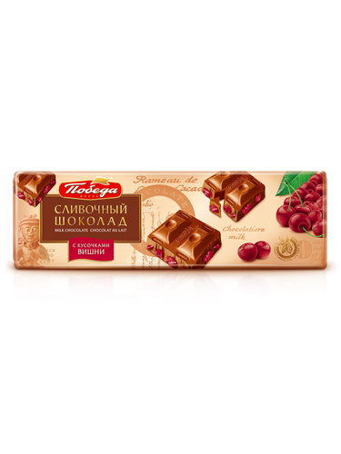 Шоколад Победа вкуса сливочный с кусочками вишни, 220г