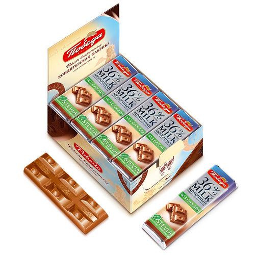 Шоколад Победа вкуса "Молочный без добавления сахара 36% какао", 24шт по 20г