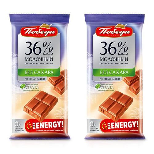 Победа вкуса Шоколад молочный, без сахара, 36 % какао", 50 г, 2 штуки