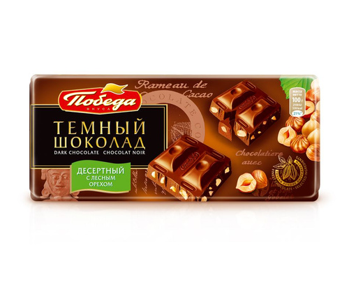 Шоколад Победа вкуса десертный с лесным орехом, 50% какао, 100 г