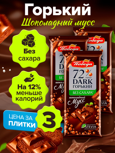 Шоколад пористый горький Победа без сахара со стевией 3 шоколадки