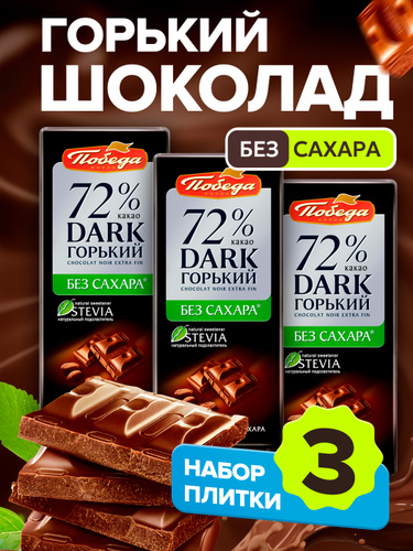 Шоколад без сахара горький Победа 72% плиточный 3 шоколадки