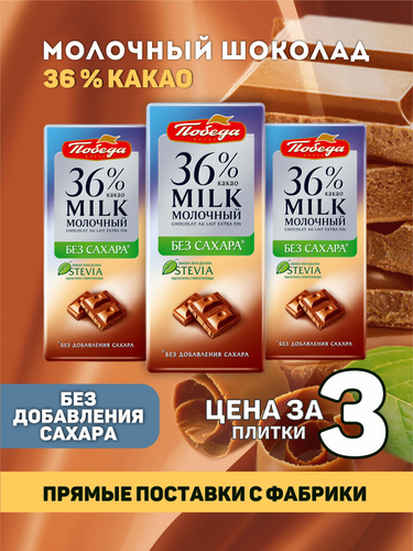 Победа вкуса Шоколад молочный, без сахара, 36 % какао", 50 г, 3 штуки