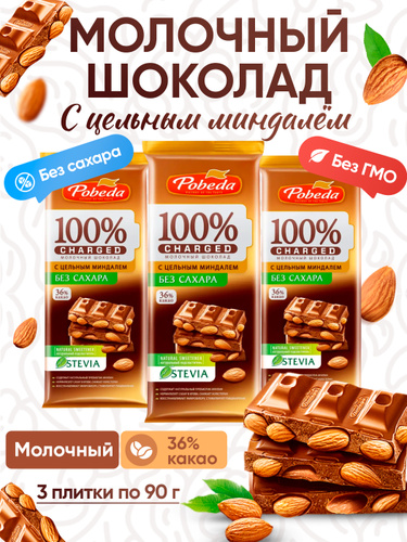 Шоколад без сахара молочный Победа с миндалем. плиточный 3 шоколадки