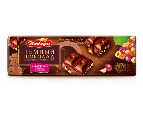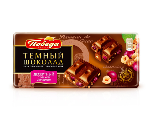 Шоколад Победа вкуса десертный, с лесным орехом и изюмом, 50% какао, 250 г