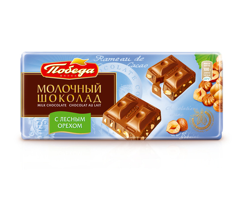 Шоколад Победа вкуса молочный с лесным орехом, 100 г