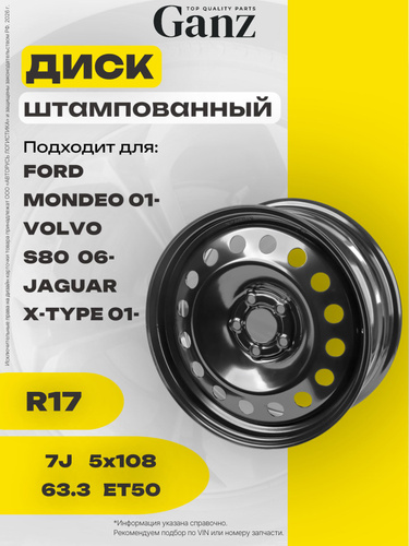 GANZ Диск штампованный для Ford, Volvo Колесный диск Штампованный 17x7" PCD5х108 ET50 D63.3