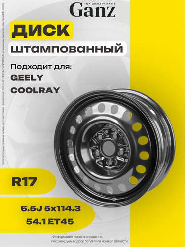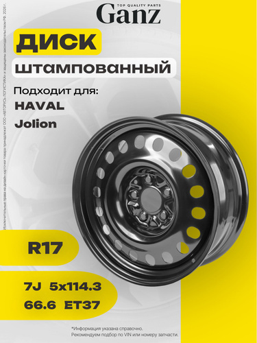 GANZ Диск штампованный для Haval Jolion 2022- Колесный диск Штампованный 17x7" PCD5х114.3 ET37 D66.6
