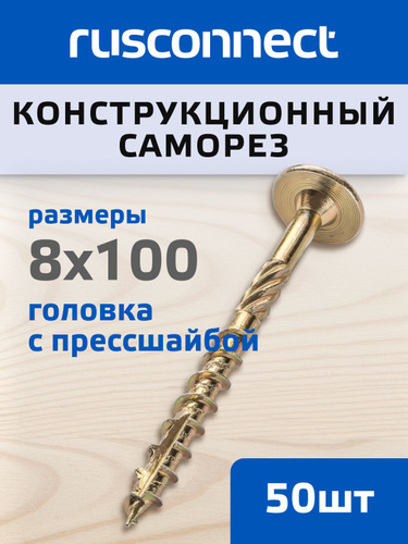 Шуруп (саморез) конструкционный Rusconnect для дерева головка с прессшайбой 8х100 мм жёлтый