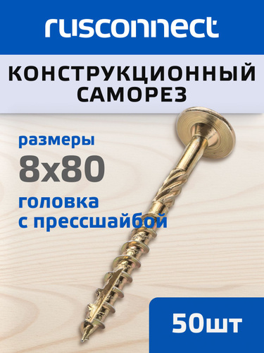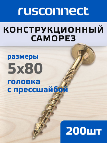 Шуруп (саморез) конструкционный Rusconnect для дерева головка с прессшайбой 6х80 мм жёлтый
