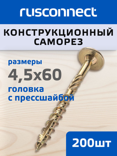 Шуруп (саморез) конструкционный Rusconnect для дерева головка с прессшайбой 4.5х50 мм жёлтый