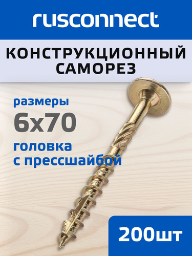 Шуруп (саморез) конструкционный Rusconnect для дерева головка с прессшайбой 6х70 мм жёлтый