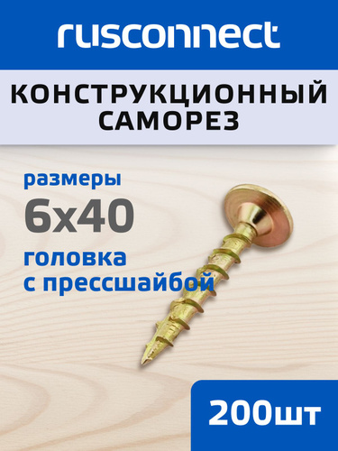 Шуруп (саморез) конструкционный Rusconnect для дерева головка с прессшайбой 6х50 мм жёлтый