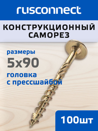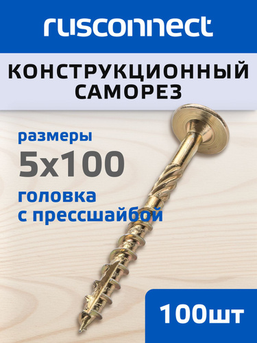 Шуруп (саморез) конструкционный Rusconnect для дерева головка с прессшайбой 5х100 мм жёлтый