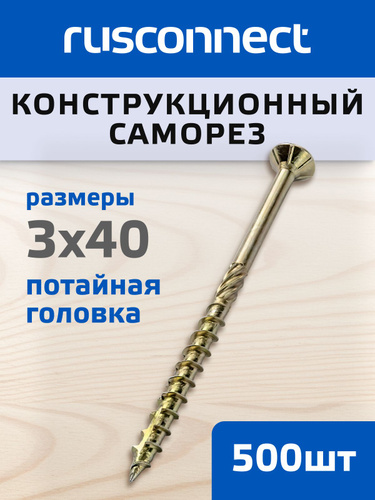 Шуруп (саморез) конструкционный Rusconnect для дерева потайная головка 4x40 мм жёлтый