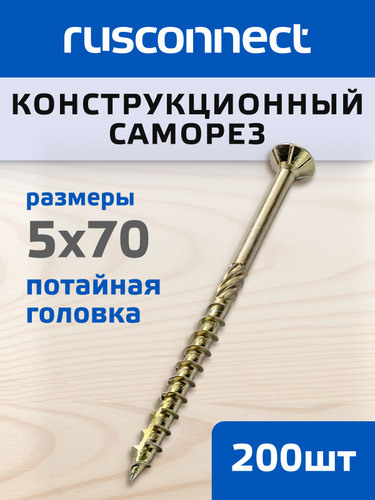 Шуруп саморез 5х70 Torx по дереву потай конструкционный Rusconnect