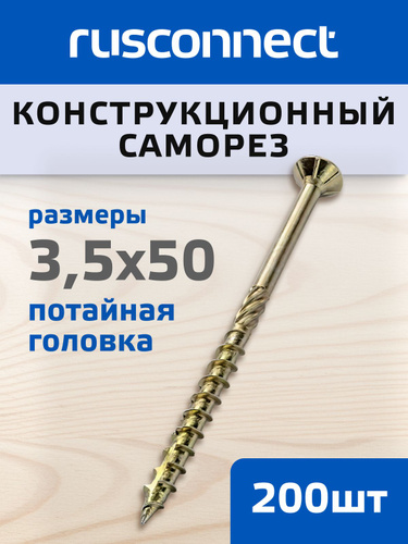Шуруп (саморез) конструкционный Rusconnect для дерева потайная головка 3,5х50 мм жёлтый