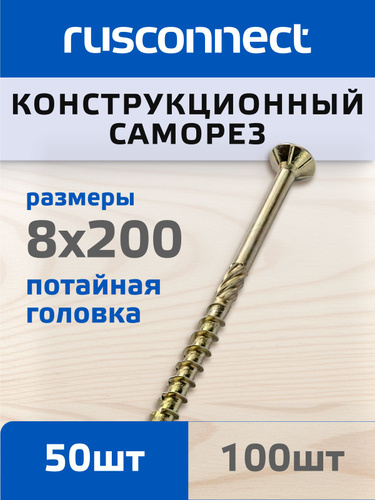Шуруп (саморез) конструкционный Rusconnect для дерева потайная головка 6х200 мм жёлтый