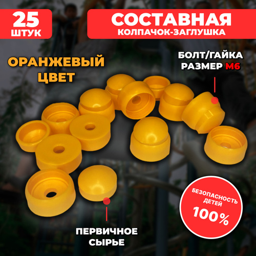 Составные пластиковые колпачки-заглушки под М6, 25 шт. для детских площадок