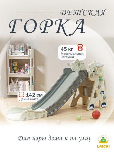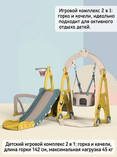 Детский игровой комплекс 2 в 1: горка и качели, длина горки 142 см, максимальная нагрузка 45 кг