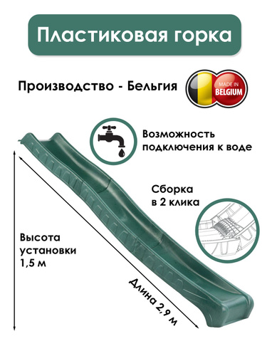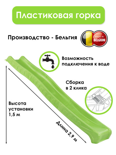 Горка детская для улицы/сборный скат 3 м Rocli, Бельгия, подключение воды, цвет салатовый