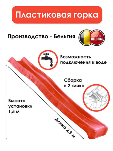 Горка детская для улицы/сборный скат 3 м Rocli, Бельгия, подключение воды, цвет красный
