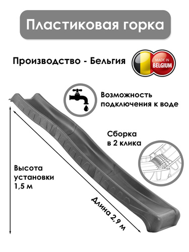 Сборный скат для детской горки rocli, длина 2,9 м, цвет серый (антрацит)