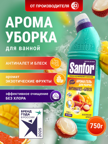 Чистящее средство без хлора для унитаза, ванной и сантехники Sanfor Экзотические фрукты гель 750 мл