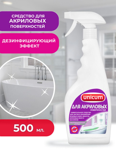 Чистящее средство для акриловых ванн, ванной, душевых кабин и сантехники Unicum 500 мл , спрей