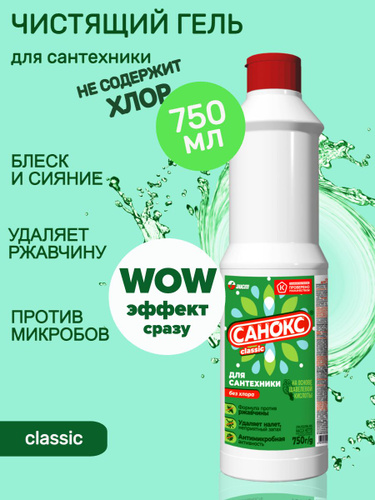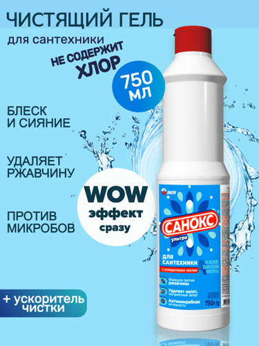 Чистящее средство Санокс Ультра 750мл/Гель для чистки сантехники, унитазов, ванн, душевых кабин, раковин, кафельных покрытий