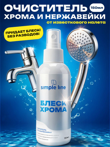 Полироль для хрома и хромированной сантехники от налета Simple Line 150мл. Средство для чистки смесителей, кранов, душевых леек