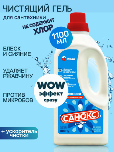 Чистящее средство Санокс Ультра 1100мл/Для чистки сантехники, унитазов, ванн, душевых кабин, раковин, кафельных покрытий