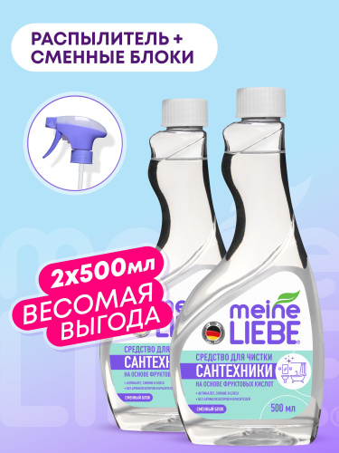 Набор MEINE LIEBE Сменный блок для чистки сантехники ванн, раковин, душевых кабин 500мл 2 шт + распылитель 1 шт