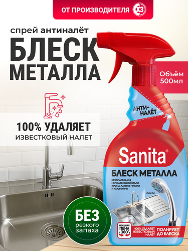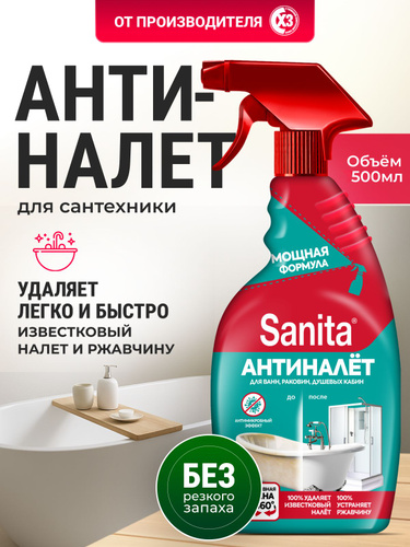 Чистящее средство для акриловых ванн, унитаза и сантехники, Sanita спрей Антиналет 500 мл