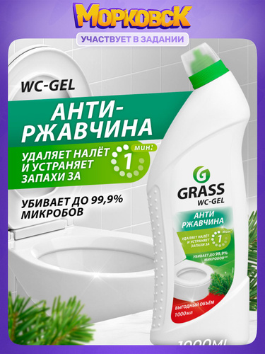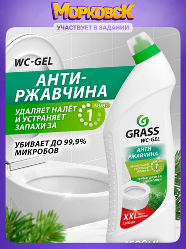 Средство для унитаза, туалета, сантехники от ржавчины и камня GRASS WC-gel 1л