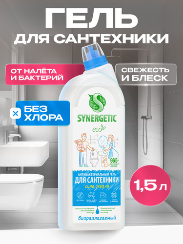 Чистящее средство для унитаза SYNERGETIC от известкового налета и ржавчины "Сила океана", 1,5 л