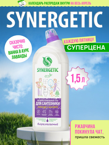 Средство для унитаза SYNERGETIC от известкового налета и ржавчины "Лаванда и шалфей", 1,5 л