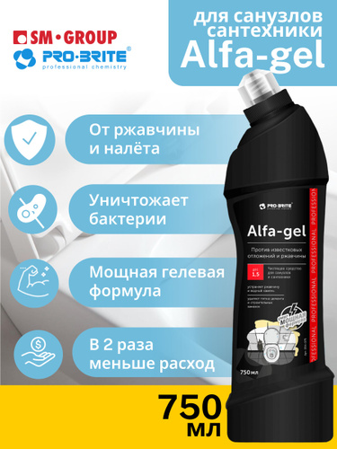 Средство для унитаза от ржавчины и известкового налета Pro-brite ALFA-GEL, 750 мл (Альфа гель), очиститель туалета кислотный