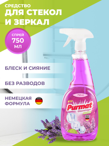 Средство для стекол зеркал Purmat Лаванда, с антибактериальным эффектом, 750 мл